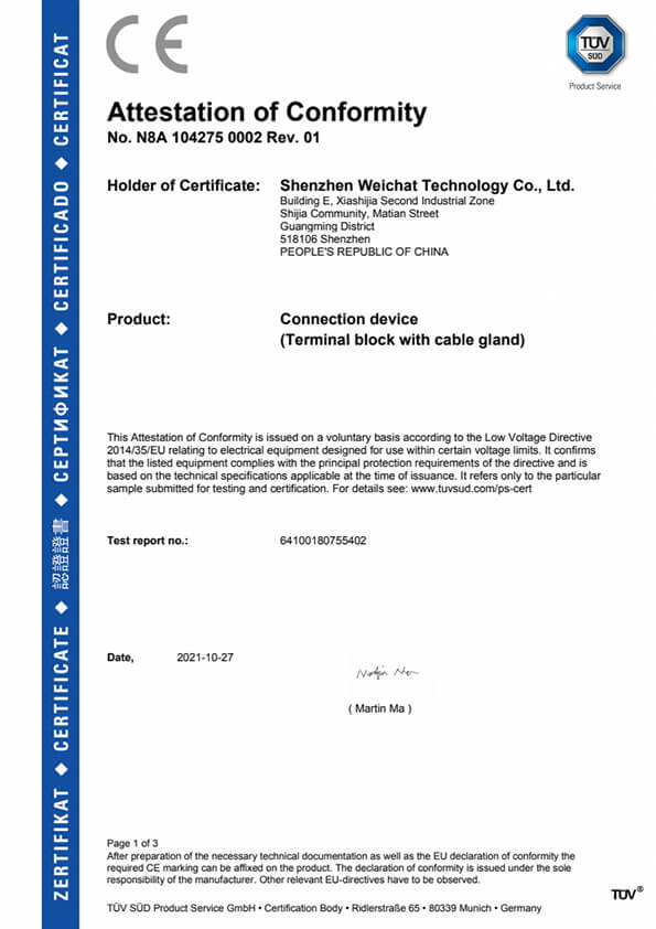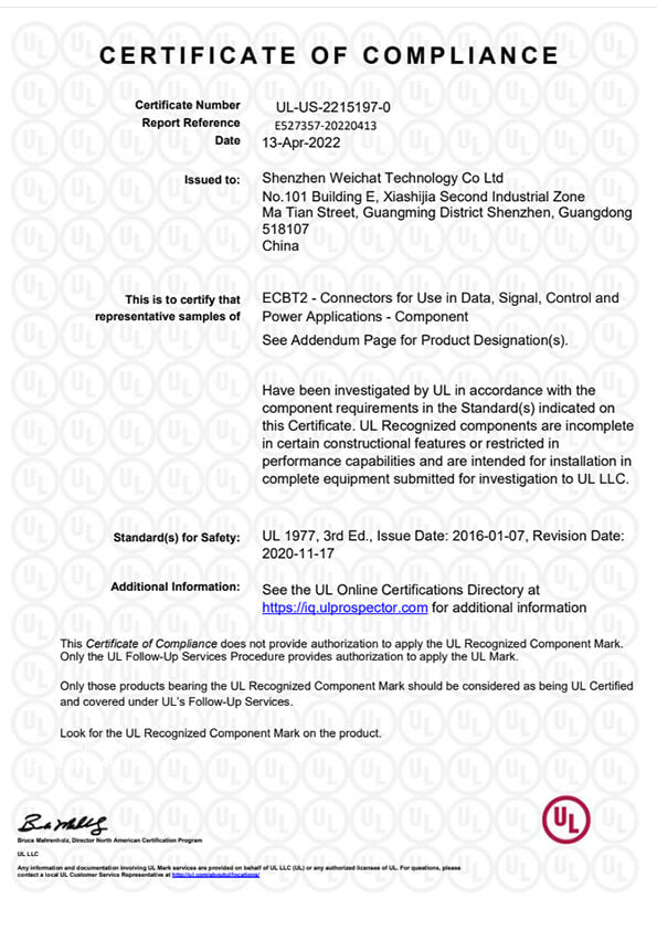 Founded in 2006, Shenzhen Weichat Technology Co., Ltd. is a manufacturer specializing in the research and development, production, sales and service of waterproof connector accessories such as IP68 waterproof connectors, cable joints, push-wire connectors, and terminal blocks.
