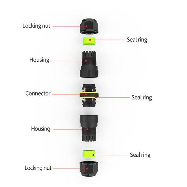 The screw locking waterproof wire connector which makes the connection between male connector and female connector more durable.This connector is also designed to be waterproof, with a waterproof level of IP68, making it ideal for use in wet and damp environments.