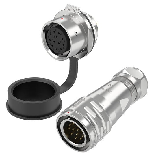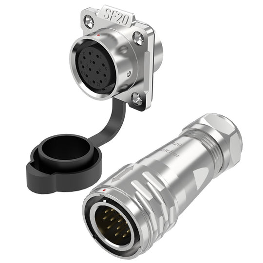 SF Series IP67 connectors feature push-pull coupling and are one of our most popular waterproof connectors. This series can be used for both wire-to-wire (in-line) and wire-to-panel connections. SF series 2 to 26 pins circular connectors are widely used in many fields such as instrumentation equipment, machine tools, power supply equipment, underground construction sites, coal mining equipment, detection and measurement equipment, industrial control, mechanical equipment, etc.