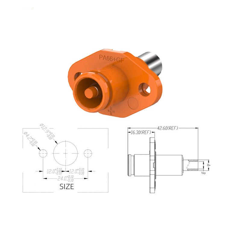 IP67 Waterproof 50A Energy Storage Connector, superior industrial standard with a cold resistance of -40°C, high temperature resistance up to 150°C, and salt spray resistance for 72 hours.