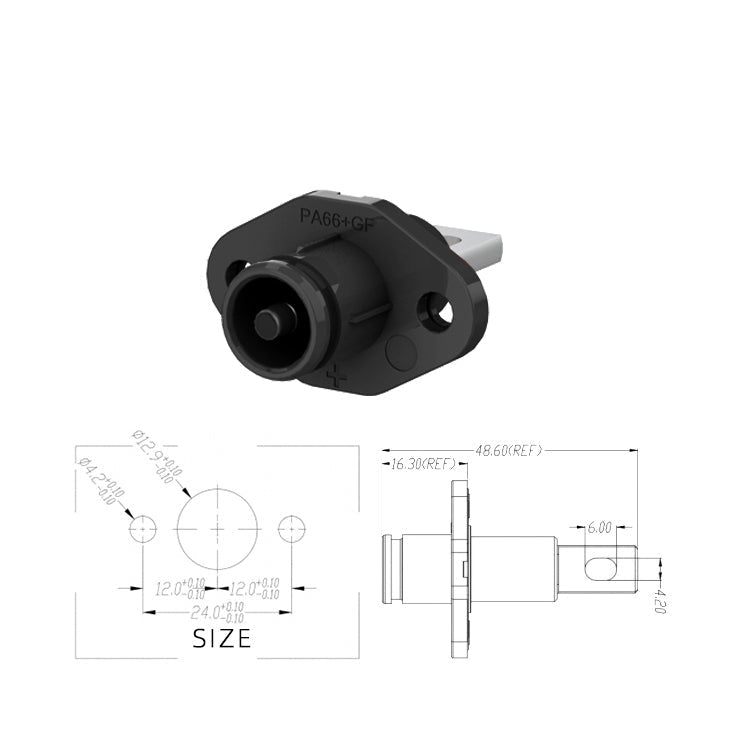 IP67 Waterproof 50A Energy Storage Connector, superior industrial standard with a cold resistance of -40°C, high temperature resistance up to 150°C, and salt spray resistance for 72 hours.